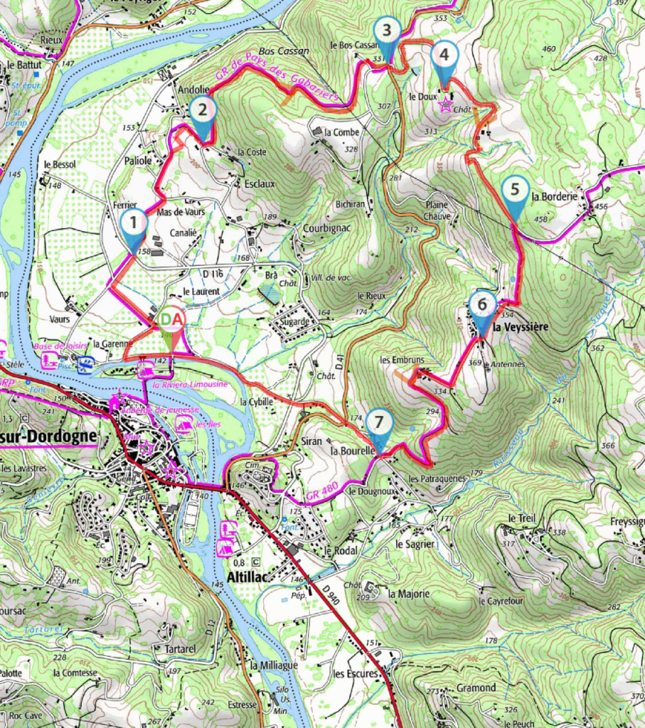 | The Dordogne river valley around Monceaux | 27 mn | yes | 14 km | 5h30 | Mid |