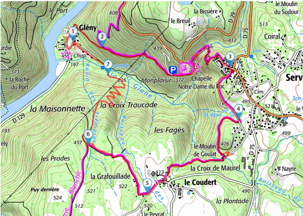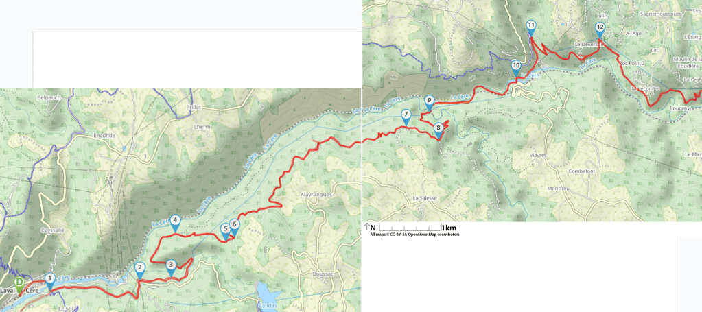 You will need two cars for this one, as the starting point differs from the arrival one. Only for seasoned hikers (long with substantial positive elevation). Otherwise very wild setting within the Gorges de la Cère. Mostly under tree coverage.